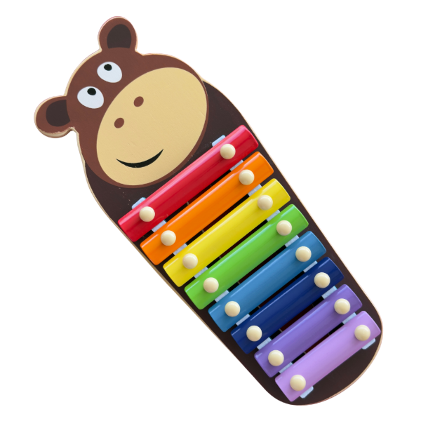 XILOFON BASE DE MADERA CON 8 TECLAS METÁLICAS Y 2 BAQUETAS DE MADERA.